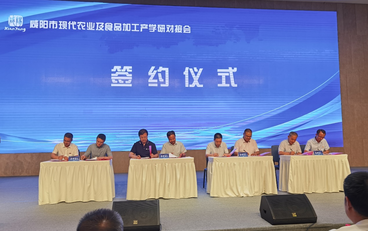 7月2日下午,由咸阳市科学技术局、咸阳市农业农村局、咸阳市乡村振兴局联合举办的“咸阳市现代农业及食品加工产学研对接会”在陕西咸阳高新区召开。永利官网副院长赵会武,教师郭森参加此次会议,对接会分企业与高校院所签约仪式、高校及科研院所代表推介科技成果、企业技术需求发布及对接交流三部分进行。