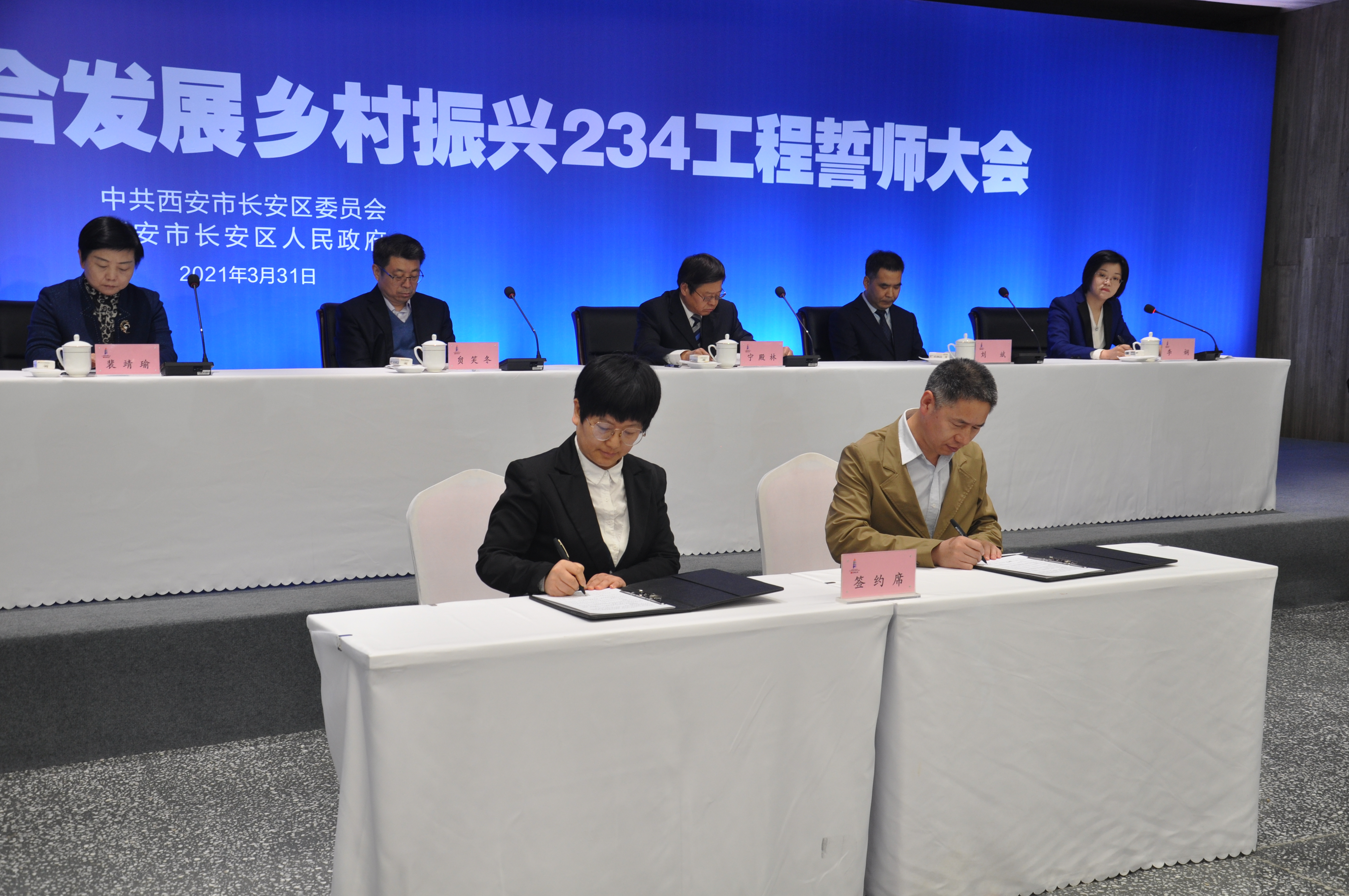 3月31日上午,西安市长安区召开2021年乡村振兴工作启动誓师大会,我校党委副书记赵作纽,学院党支部书记刘晓忠、副院长曹炜应邀参加,并签署学院与区政府合作协议。