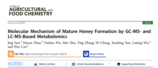 近日,永利集团304官网曹炜教授团队在食品科学领域国际著名学术期刊《Journal of Agricultural and Food Chemistry》发表了题为《Molecular Mechanism of Mature Honey Formation by GC-MS- and LC-MS-Based Metabolomics》的学术论文,该研究通过代谢组学方法揭示了不同酿造时间的蜂蜜差异性代谢物的变化规律,实现了成熟蜂蜜和未成熟蜂蜜的精准“诊断”。