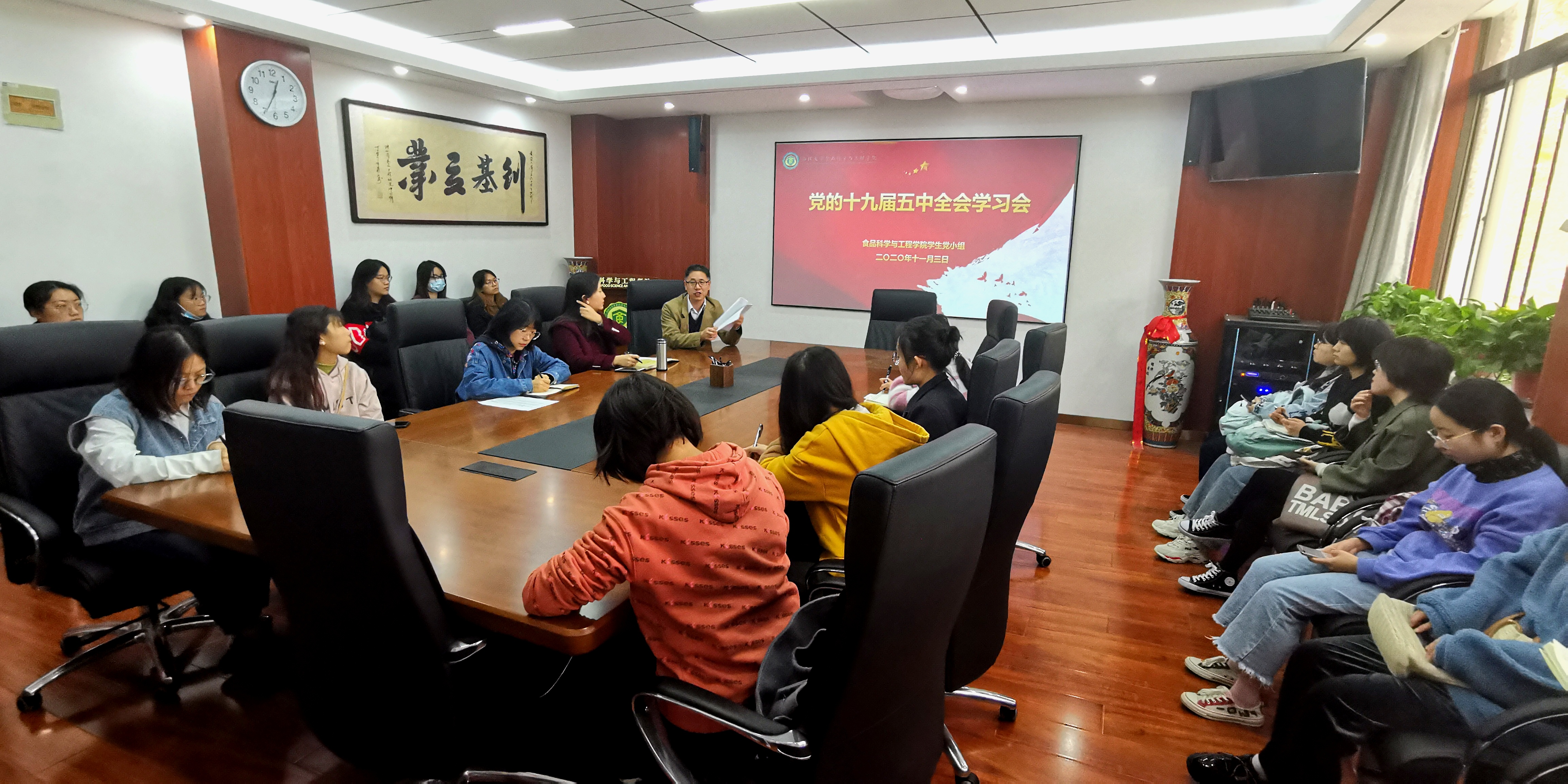 11月3日中午,永利官网学生党小组组织召开集体学习会,专题学习中国共产党第十九届中央委员会第五次全体会议精神,学院直属党支部书记刘晓忠作了题为《十九届五中全会精神学习》的报告。