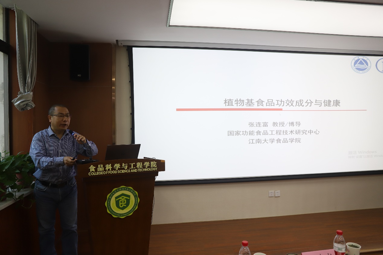 聘任仪式之后,张连富教授做了题为“植物基食品功效成分与健康”的报告,详细讲述了高品质配料与健康食品的开发等,并与现场师生进行了互动交流。