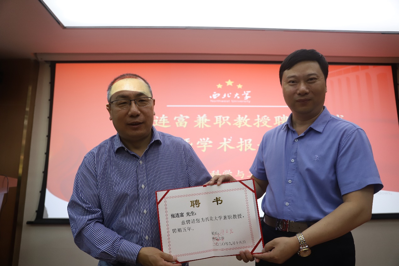 首先人力资源部副部长张现宣读了兼职教授聘任书,赖绍聪副校长为张连富教授颁发了聘书。
