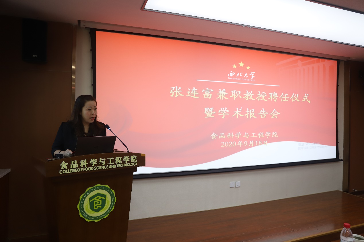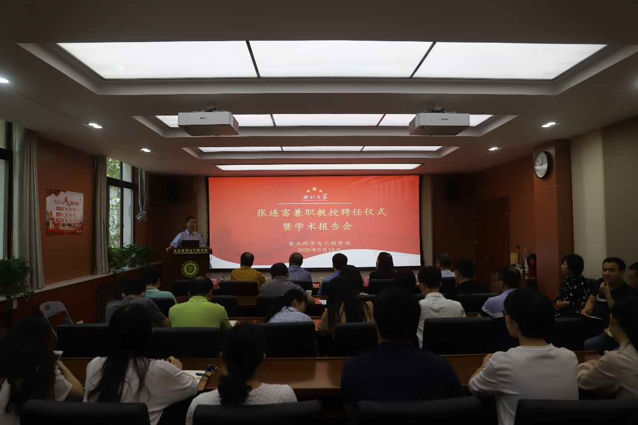 9月18日,江南大学食品学院教授、博士生导师,国家功能食品工程技术研究中心副主任,CFDA保健食品评审专家,农业农村部农产品加工专家委员会委员,国家科技奖、教育部科技奖评审专家张连富教授,受聘为我校兼职教授,并做客“创新论坛”第九百七十七讲。校党委常委、副校长赖绍聪,人力资源部副部长张现,陕西省功能食品工程中心主任刘建书、生命学院和永利官网相关师生参加了报告会。会议由永利官网王仲孚副院长主持。