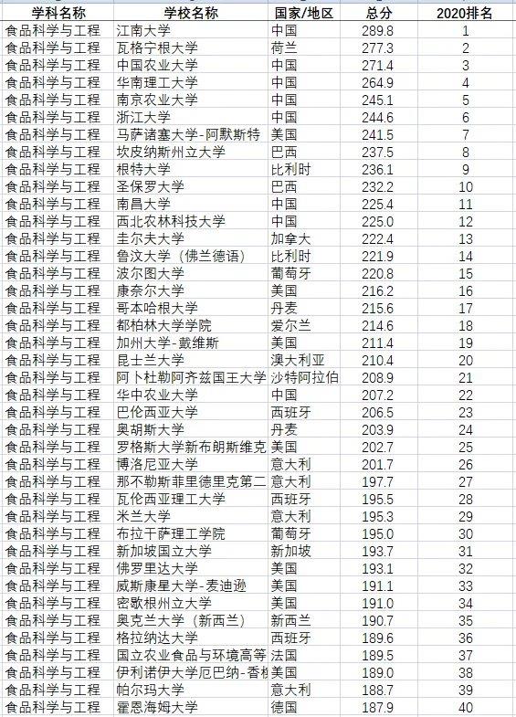 食品科学与工程学科首次进入软科世界一流学科排名榜单