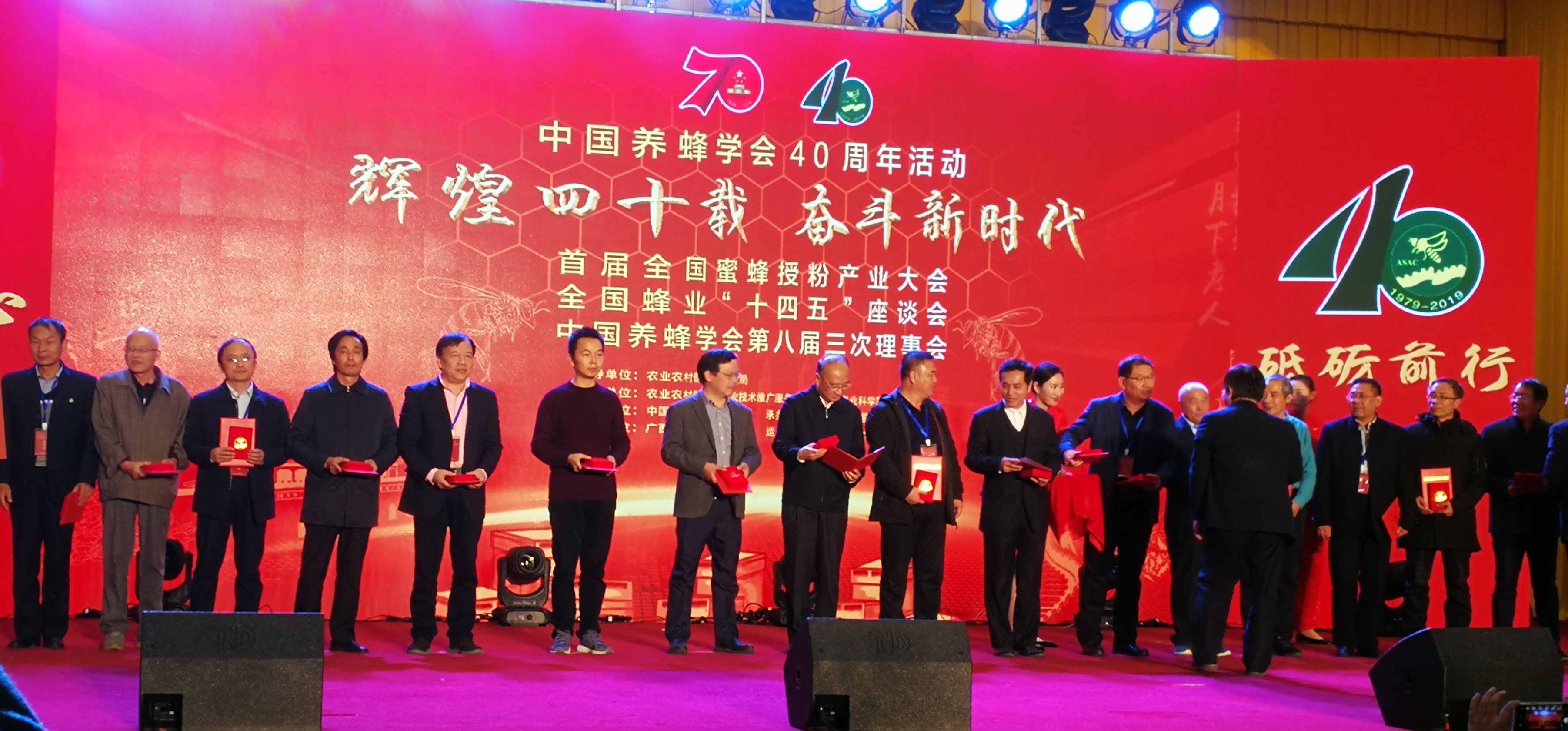 2019年11月26日上午,中国养蜂学会成立40周年庆典大会在北京友谊宾馆召开,永利官网曹炜教授被授予“全国蜂业突出贡献奖(科研、教育)”。