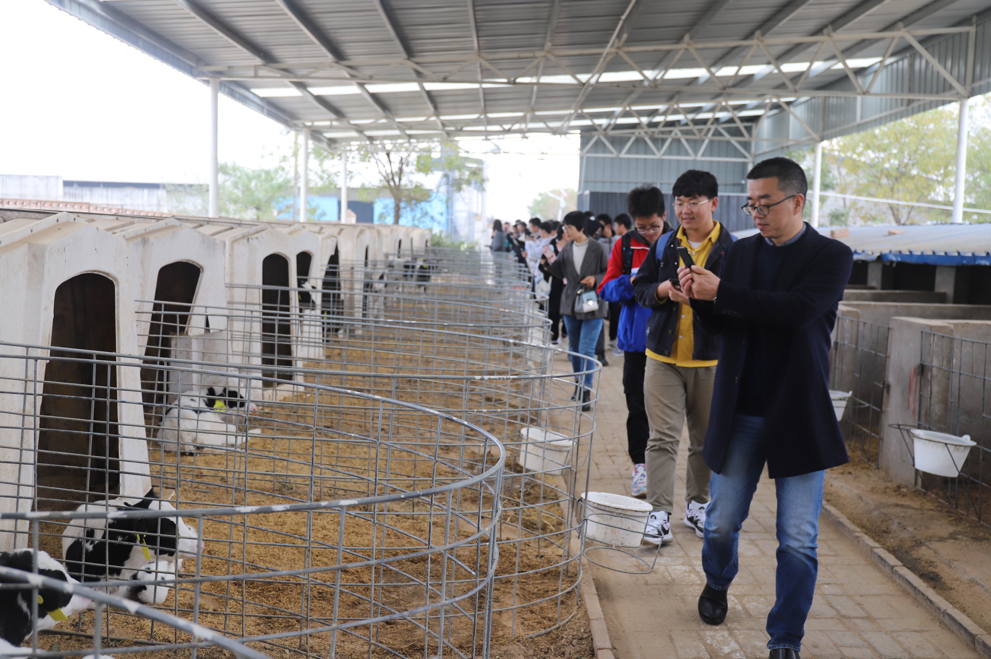 2019级食品科学与工程学系校友雷曦总经理带领同学们参观了奶牛养殖场基地,并详细讲解了奶业发展史,奶牛繁育、科学饲养、牧草制备、检验检疫、病害防治等专业知识,同学们饶有兴趣地参观了奶牛繁育场、现代化挤奶车间,检验检疫实验室等,深刻感受到机械化、智能化现代企业对奶牛养殖、牛奶市场快速发展的巨大推动力。
