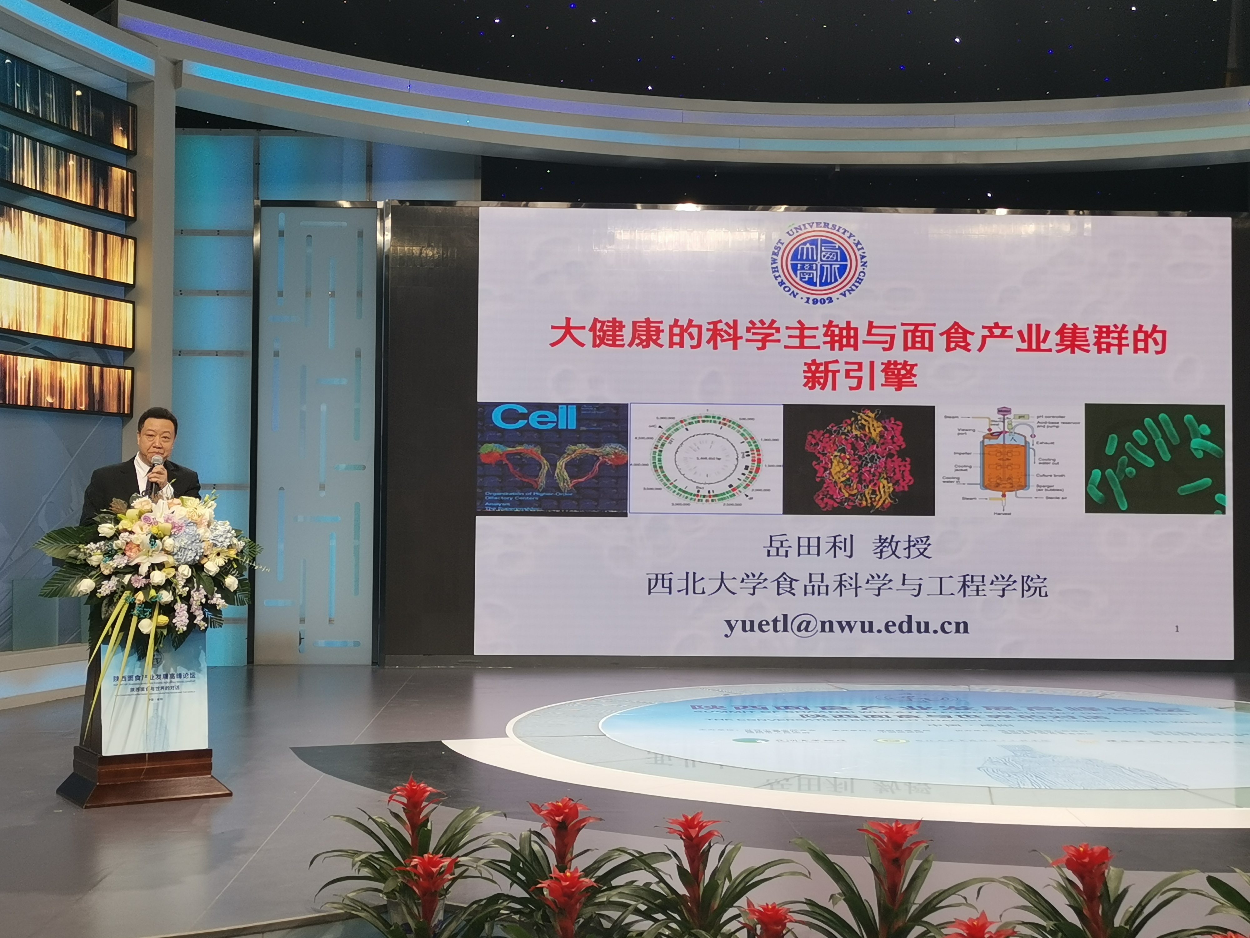 此次面食大会活动内容丰富,有国际面食之都授牌仪式、面食主题嘉年华、面食产业展示、名宴名菜展、面食产业发展高峰论坛、美食探秘之旅等活动内容,来自韩国、印度等国外友好人士和四川、西安、宝鸡、咸阳等100多家餐饮协会参加了大会。永利官网作为学术支持单位,岳田利院长在面食产业发展高峰论坛部分为中外友人作了题为“大健康的科学主轴与面食产业集群的新引擎”学术报告,从食品安全对策、大健康问题的科学主轴、培育营养健康食品产业集群新引擎、营养健康干预面食研发几方面把脉陕西面食发展,引起与会嘉宾的热烈好评。学院党支部(直属)书记刘晓忠、副院长赵会武一同参加了大会。