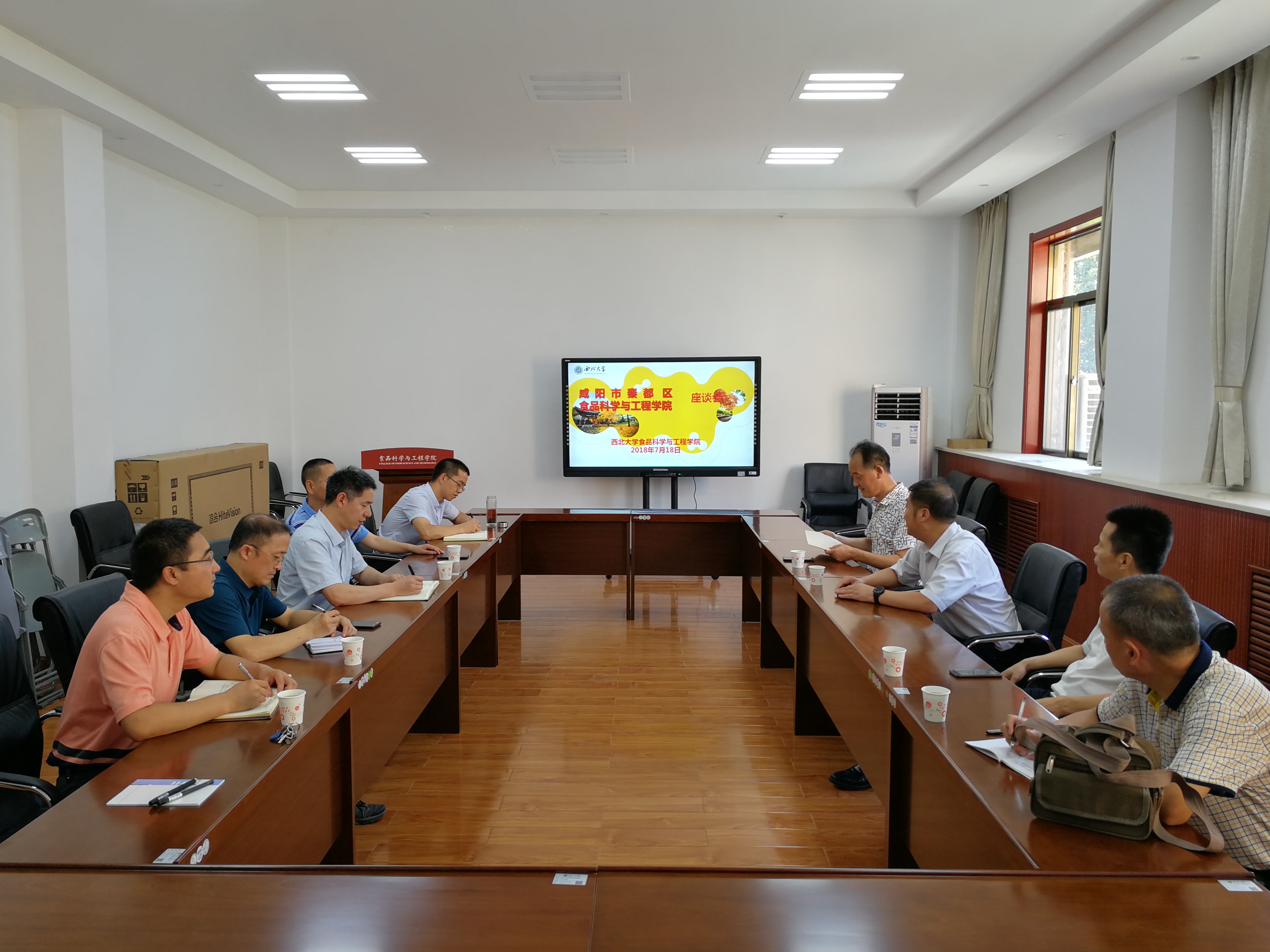 2018年7月18日上午,咸阳市秦都区科学技术局局长刘战辉、市场和质量监督管理局局长杨继康一行四人来永利官网洽谈校地合作事宜,永利官网领导班子成员参加。