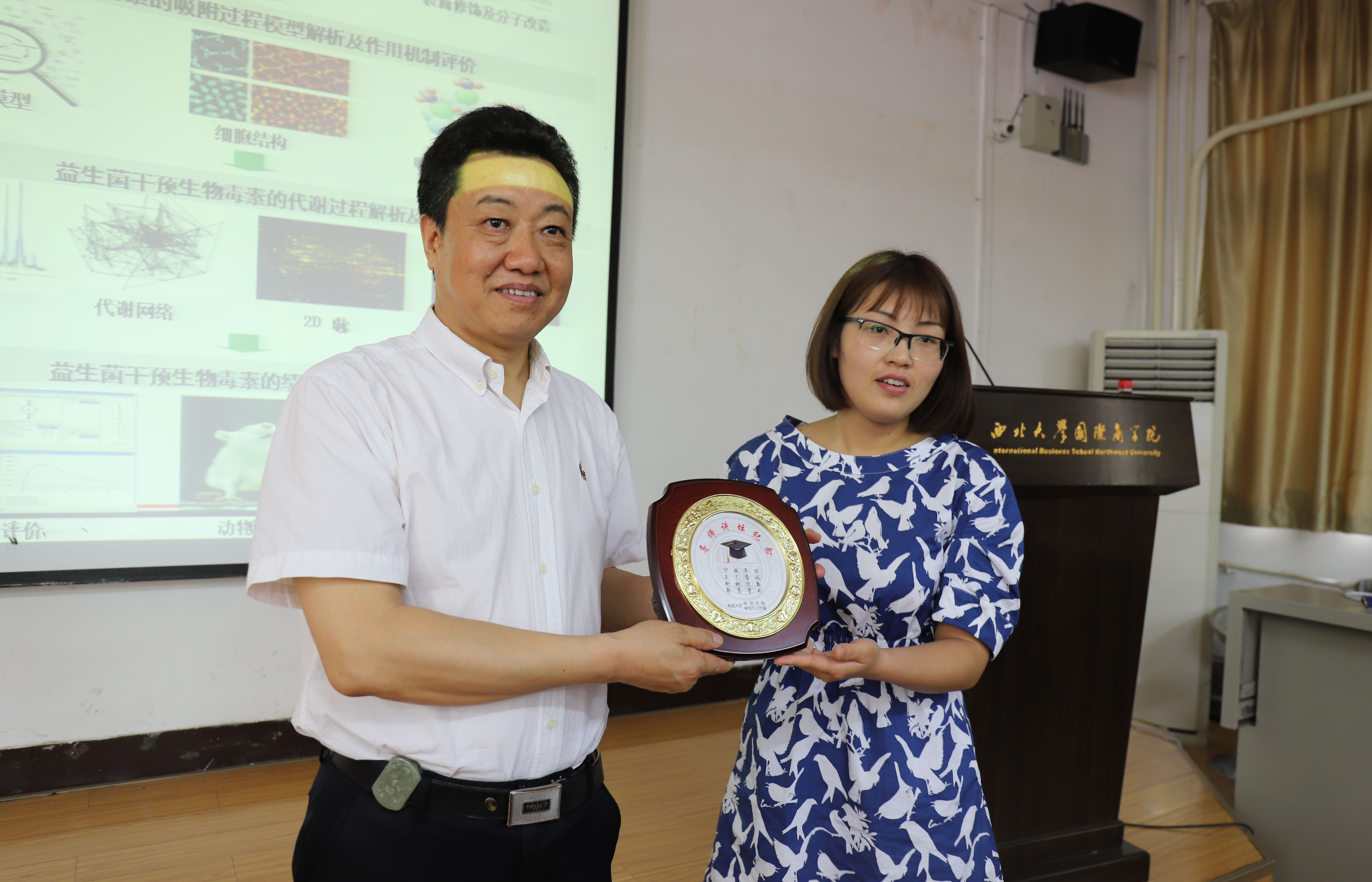 学生代表向岳田利教授赠送导师讲坛纪念牌