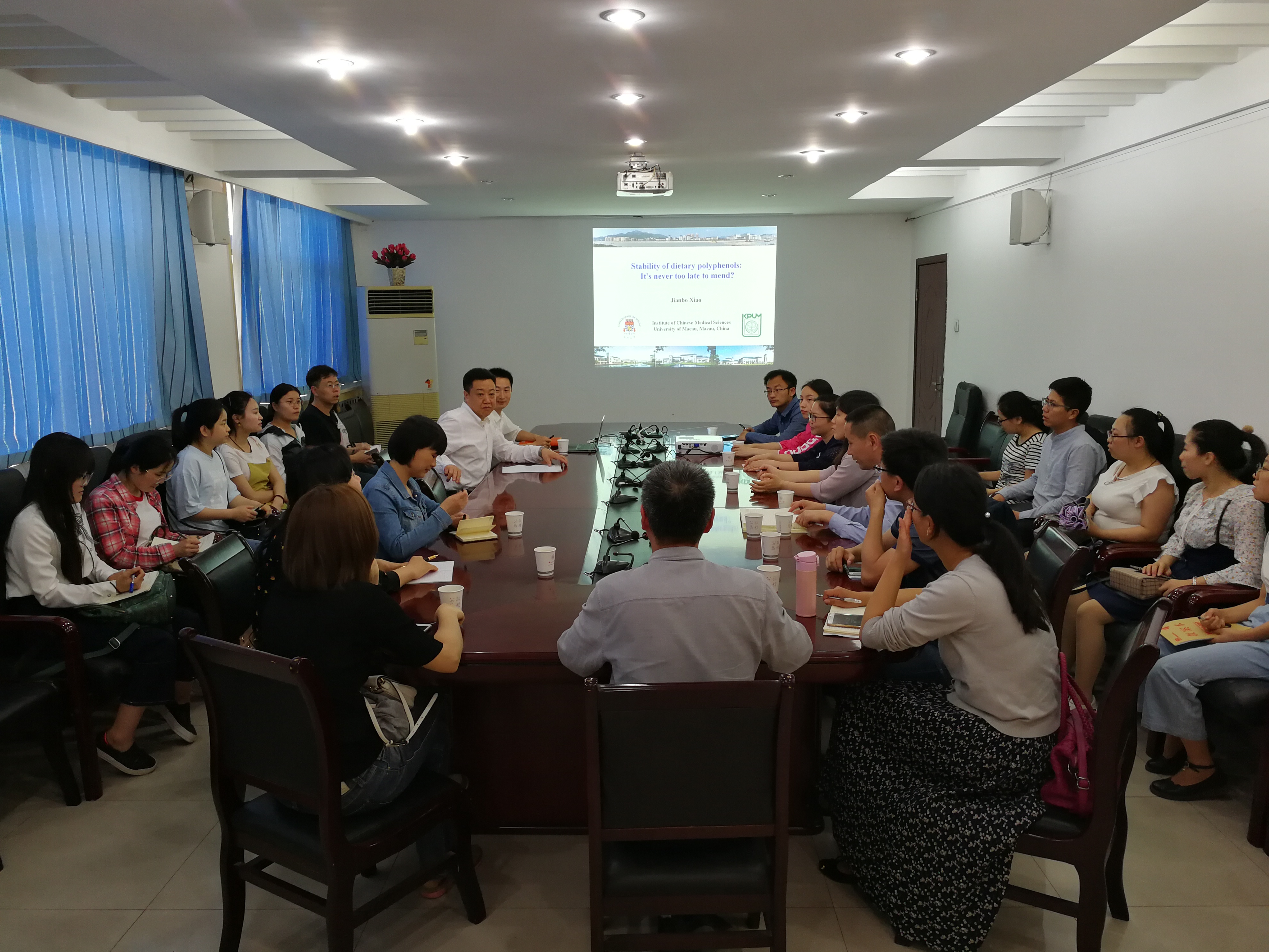 5月3日下午,澳门大学萧建波教授应邀来永利官网,作题为《Stability of dietary polyphenols :It’s never too late to mend》的学术报告,该报告也是永利集团304官网创新论坛第294讲,永利官网全体教师和部分研究生参加。报告会由岳田利院长主持。