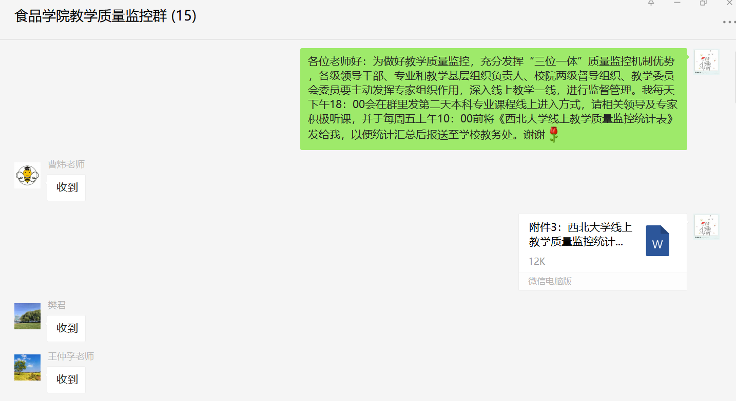 为确保教学工作的有效推进,学院在积极协调和做好服务保障的同时,加强教学过程管理,逐步形成“精准有序、精细对接、线下保障、线上通畅”的工作模式。线上教学过程中,通过加强班级管理、学生管理,及时建立师生联系交流平台,利用课前告知、课中讲授、课后反馈的运行模式,保证了师生的上下贯通和良性互动,确保学生能跟得上、跟得紧、学得好。