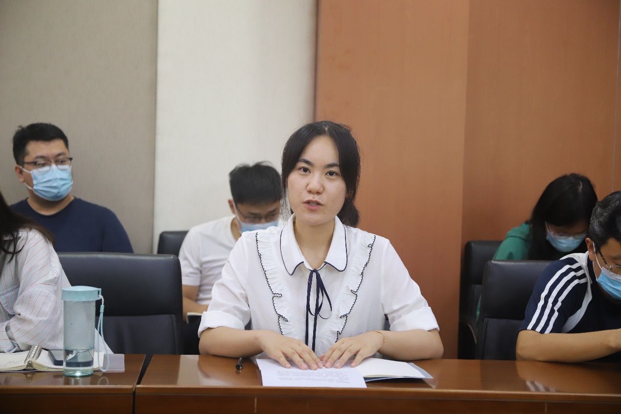 王靖副教授代表新入职老师发言。她在发言中谈到:自己作为新进教师,看到学院在强有力的领导下,广大教职员工共同不懈努力,学院事业欣欣向荣,自己一定会努力工作,尽快融入,茁壮成长,抓住机遇,早日为西大食品学院的宏大发展贡献自己的一份力量。