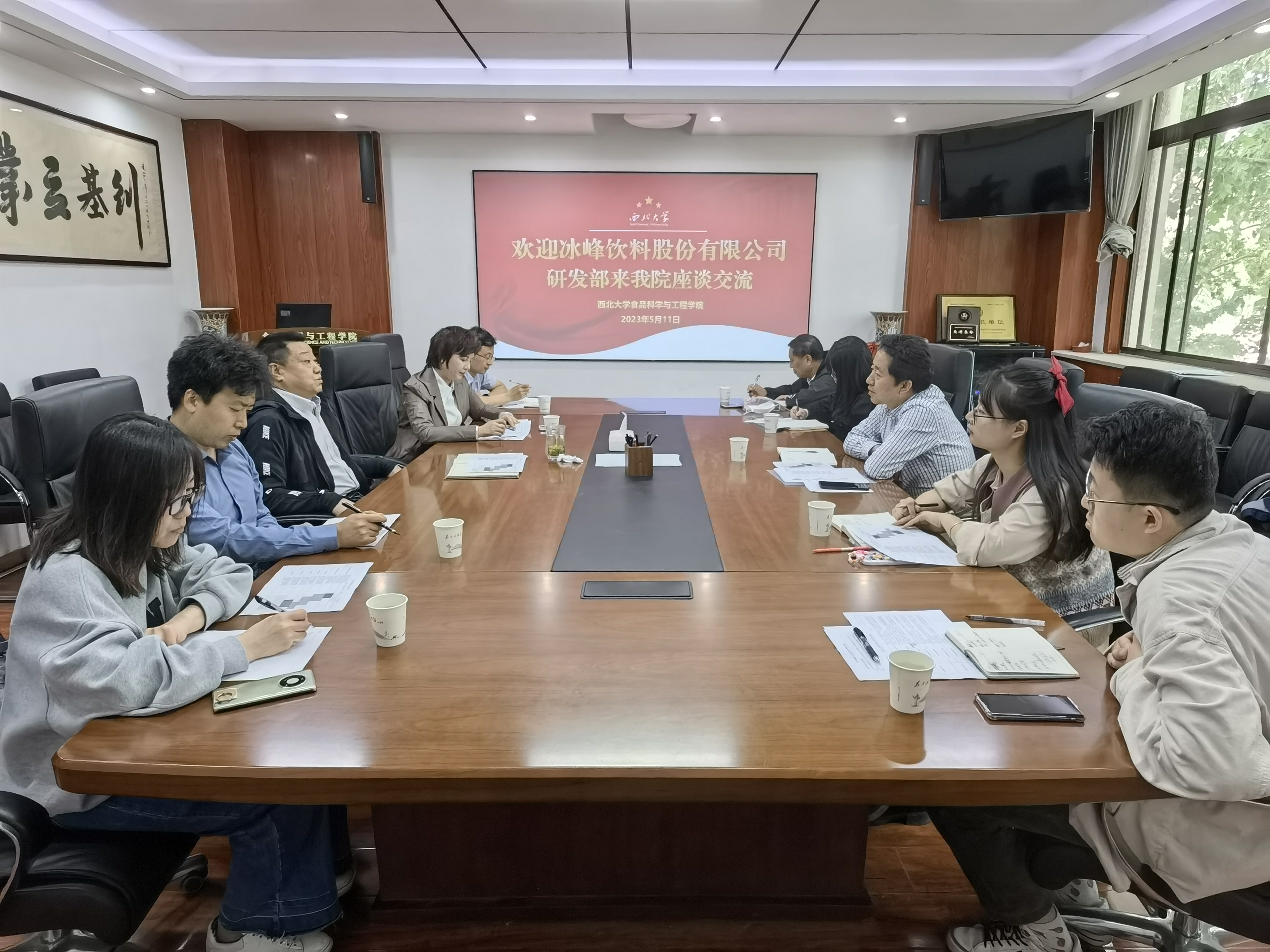5月11日上午,冰峰饮料股份有限公司副总经理、永利集团304官网冰峰饮品研究院副院长刘天良携冰峰研发部一行5人来永利官网座谈交流,商讨冰峰饮品研究院产品研发事宜。岳田利院长主持了座谈会,永利官网冰峰饮品研究院的骨干成员袁亚宏教授、盛庆林教授等参加了座谈会。