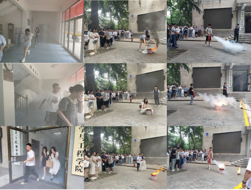 本次活动分为消防安全知识讲座、应急逃生演练及灭火演练三部分。首先,任纬主任详细阐述了消防安全知识,通过事故案例警示我们“安全就是意识,安全就是责任”。同时他对逃生基本常识、消防火灾的应急、消防器材的正确使用进行了深入浅出的讲解,并与现场学生进行互动交流,切实有效的提高了学生应急救援能力,现场气氛热烈。