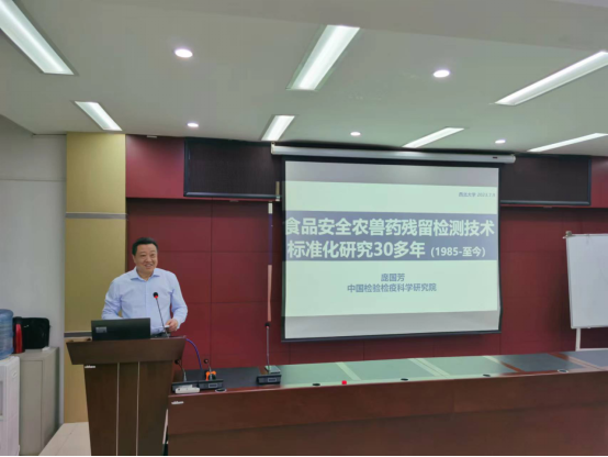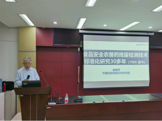 7月9日上午,中国工程院院士,中国检验检疫科学研究院首席科学家庞国芳教授在永利集团304官网太白校区进行了永利集团304官网“杨钟健学术讲座”第二百二十讲“创建农药电子身份证实现食品农药残留检测技术信息化”。随同庞国芳院士出席本次报告会的有中国农业科学院农产品加工研究所原所长、国家中药材产业技术体系岗位科学家、中国农业国际合作促进会功能农产品分会会长,二级研究员,博士生导师戴小枫教授,团队中草药产业体系岗位科学家孔志强研究员。报告会由岳田利院长主持,食品学院100多人参加了报告会。