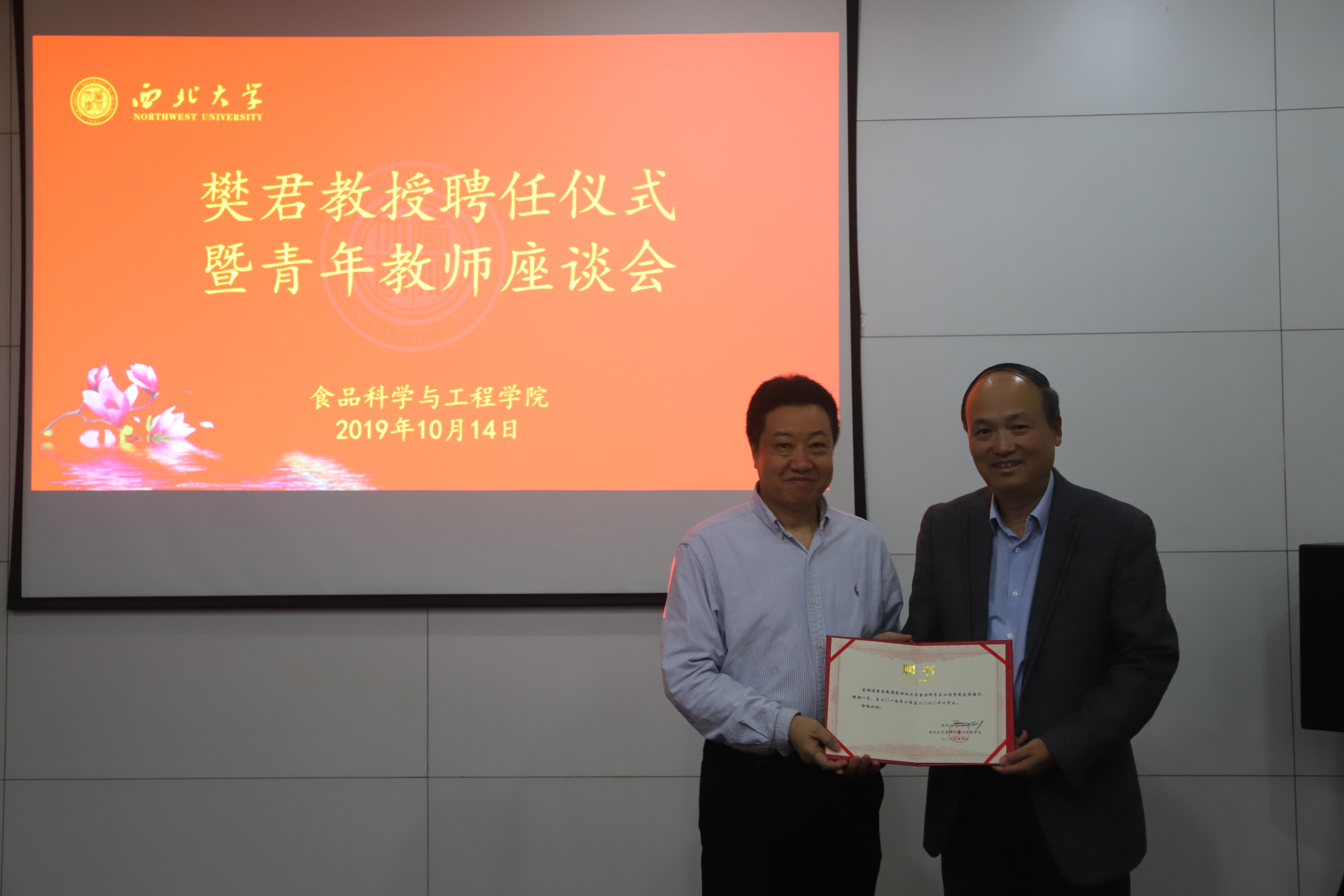 10月14日下午,永利官网举行樊君教授聘任仪式暨青年教师座谈会,全院教师参加,会议由副院长赵会武主持。