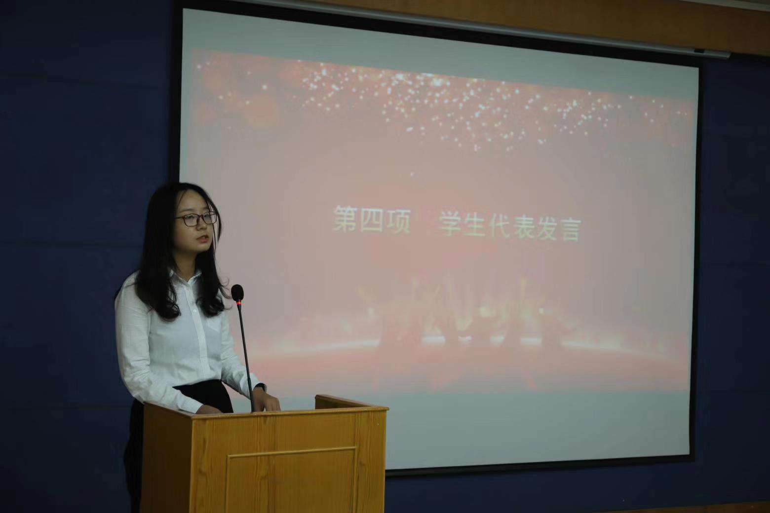 接下来,研究生学生代表张雪倩、本科生新生代表高润分别发言,表示将珍惜韶华,奋发有为,坚定理想信念,锤炼坚毅品质,牢记“公诚勤朴”校训,在学院提供的良好平台上,书写美丽的人生篇章。