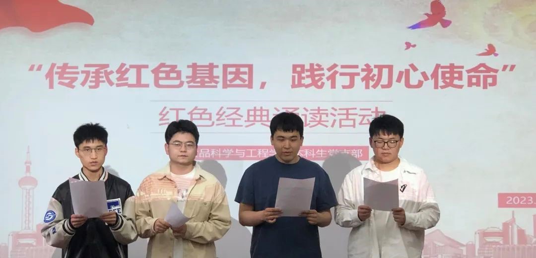 书香知食增素养。开展“书香知食”系列主题活动,举办“青春”读书分享会和读书沙龙,举行红色经典诵读,有机融合“全民阅读”和学生党员理想信念教育,多举措引导青年学生爱读书、读好书、善读书,教育引导大家传承红色基因,争做有理想、敢担当、能吃苦、肯奋斗的新时代好青年。